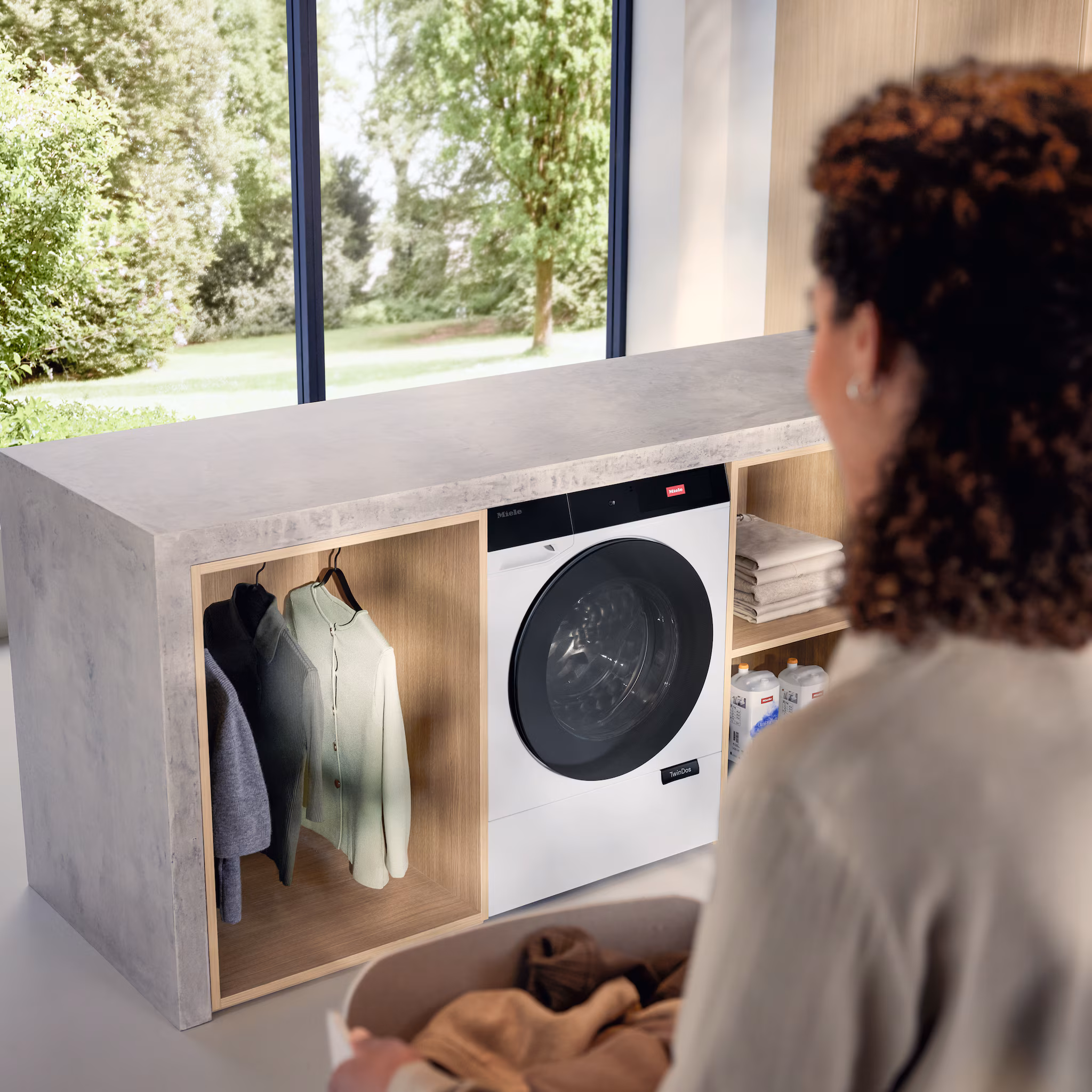 Die Miele NOVA Waschmaschinen und Trockner fügen sich mit ihrem klaren, zeitlosen Design harmonisch in jede Waschküche ein. Hochwertige Oberflächen und durchdachte Details unterstreichen den Premium-Anspruch der Serie.