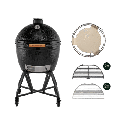 Das Big Green Egg: The Onyx Master Set XLarge ist ein Komplettset rund um Big Green Egg: The Onyx in der Grösse XLarge. Es kombiniert das EGG mit zentralen Komponenten für vielseitiges Kochen, darunter ein convEGGtor, ein convEGGtor-Korb und halbrunde Gusseisenroste. Dieses Setup ermöglicht direktes und indirektes Garen und bietet Flexibilität für unterschiedlichste Anwendungen. Die hochwertige Keramikkonstruktion sorgt für konstante Wärmespeicherung und präzise Temperaturkontrolle. Alle enthaltenen Komponenten sind vollständig mit dem bestehenden Big Green Egg XLarge System kompatibel.